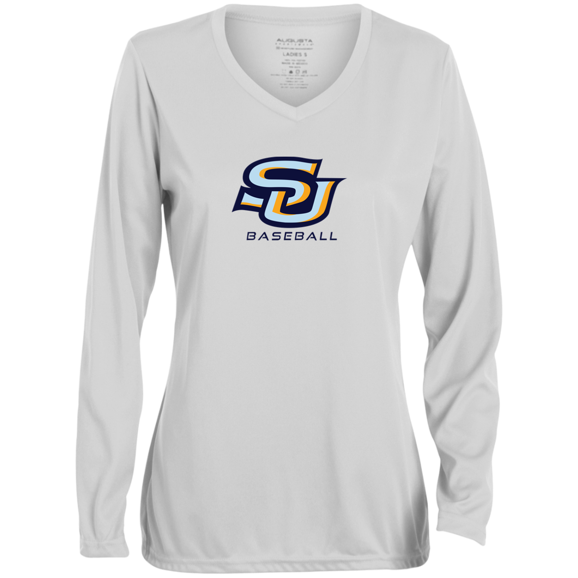 SU Baseball navy 1788 Ladies' Moisture-Wicking Long Sleeve V-Neck Tee